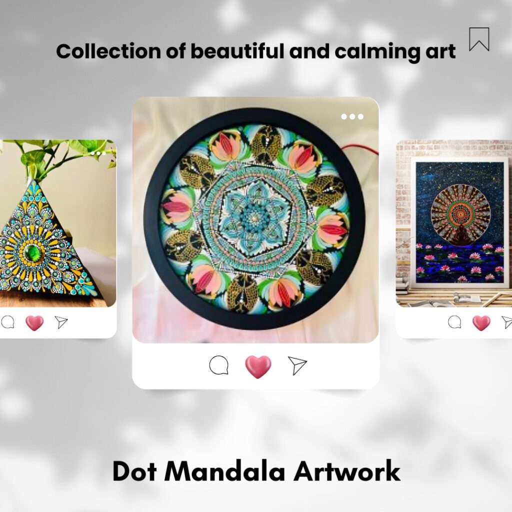 Every dot in a dot mandala is positioned with conscious energy, in contrast to brushstrokes. Because the rhythm of the dots turns into a form of meditation, minimalism becomes a means of achieving mindfulness rather than a restriction.