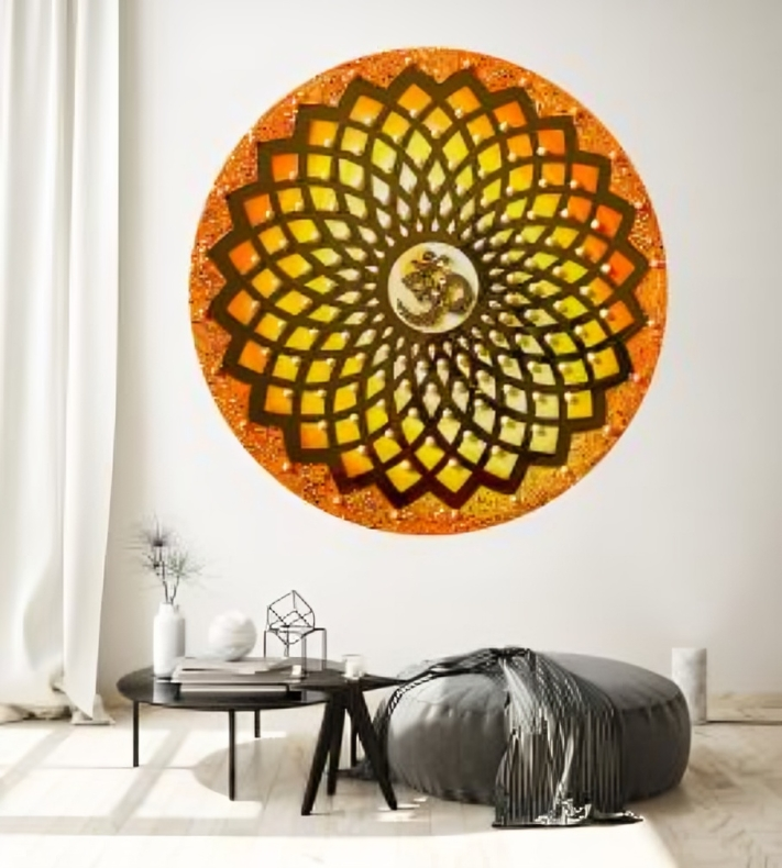 Explore three-dimensional mandala art to add texture and depth to your decor. These can be made using layered paper, carved, or embossed. 3D mandalas’ appealing visual feature of light and shadow makes them perfect for minimalist or contemporary spaces.