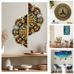 Place a large, colorful Mandala artwork as the main attraction in your living room or office. Choose a central wall where the mandala can grasp attention without competing with other decor elements.This positioning brings vitality into the room and highlights the artwork while encouraging harmony and balance.