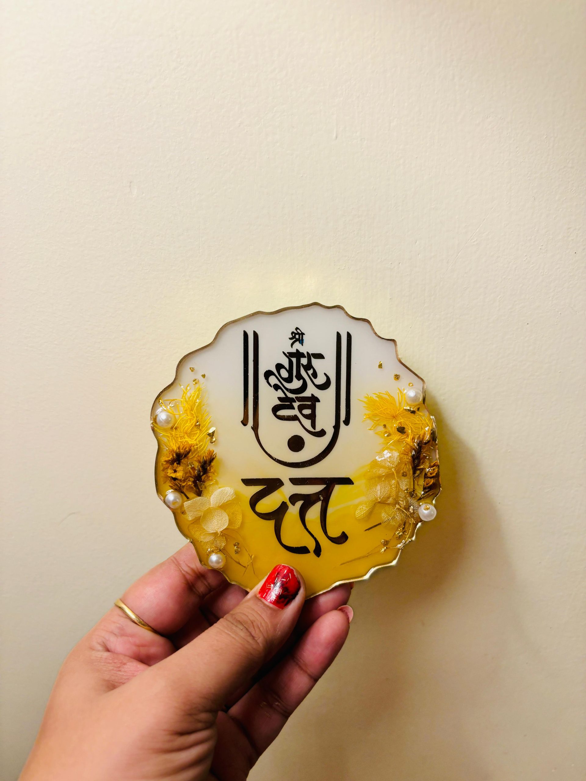Elevate your space and spiritual practice with the Datt Bhagwan Mantra | Yellow & White Hydrangeas Serenity. This elegant decor piece features the sacred Datt Bhagwan Mantra, beautifully engraved and framed, serving as a daily reminder of peace and positivity. The serene design is further enhanced by an arrangement of vibrant yellow and white hydrangeas, symbolizing gratitude and grace.